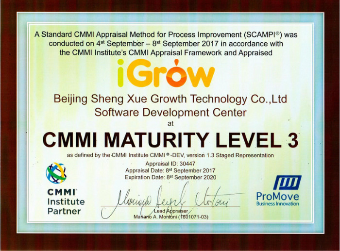 北京盛學成長科技有限公司成立于2011年1月,擁有高新技術企業、軟件企業、CMMI三級認證等資質,以及軟件著作權